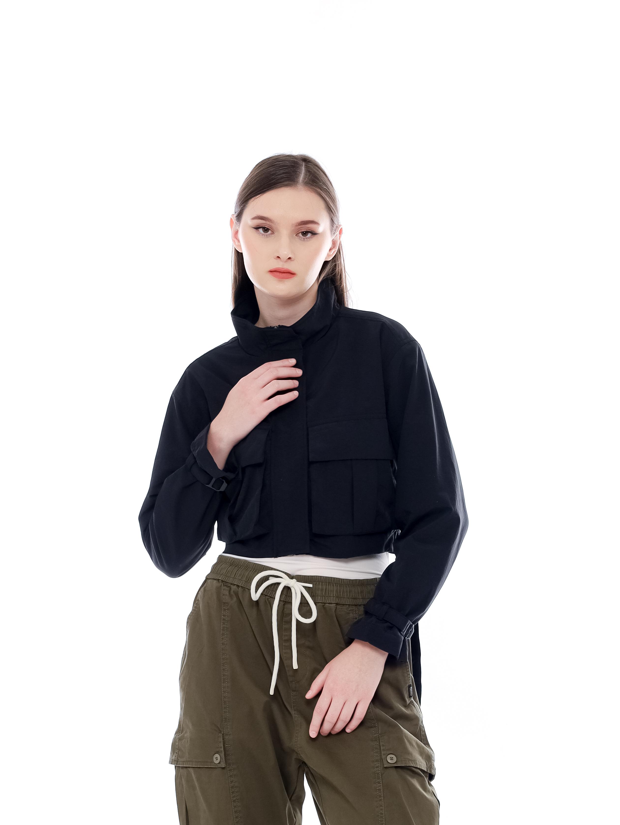 CROPPED JACKET WITH WATER REPELLANT FABRIC DETAIL WRINKLE WITH ELASTIC DI BELAKANG DAN DI LENGAN 100% POLLY