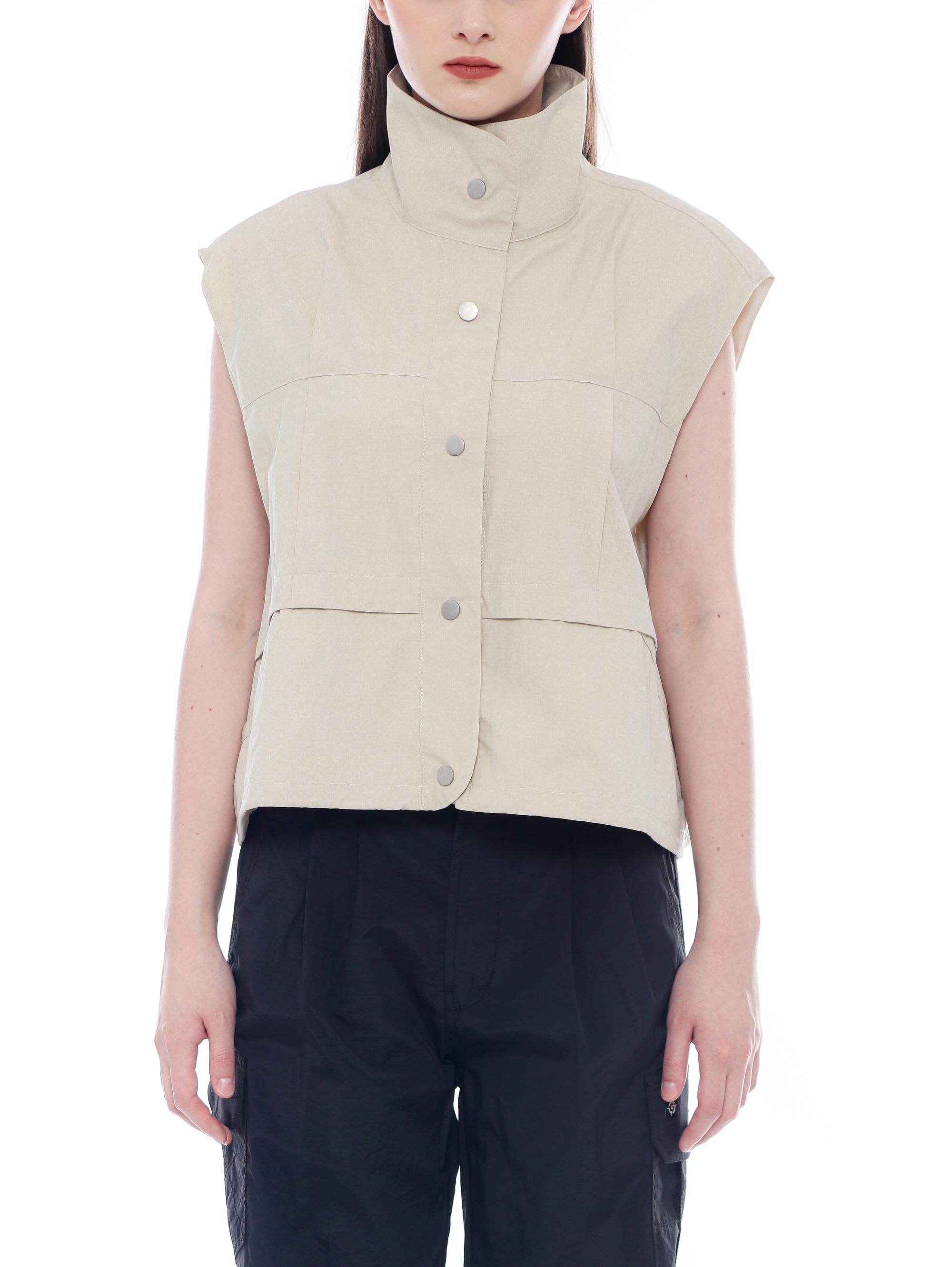 CROPPED FIT VEST WITH STAND COLLAR AND ZIPPER. QUICK DRY
