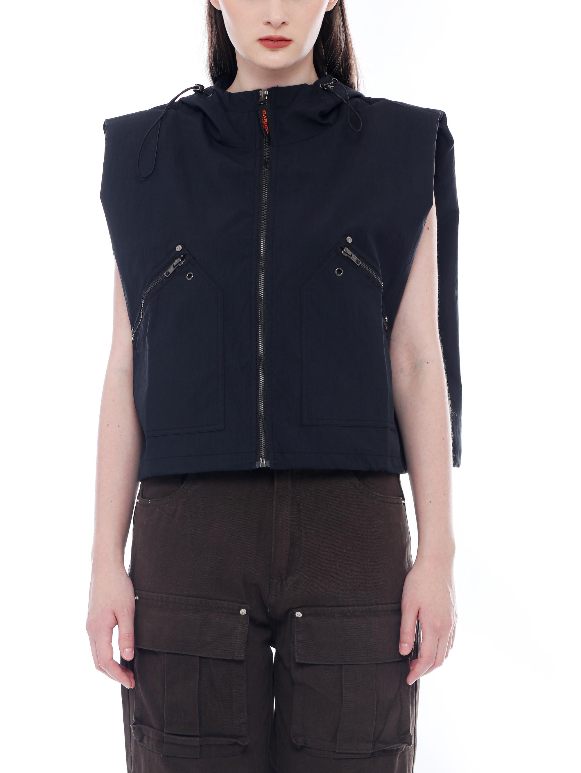VEST WITH WRINKLED POCKETS AND UTILITY ZIPPER