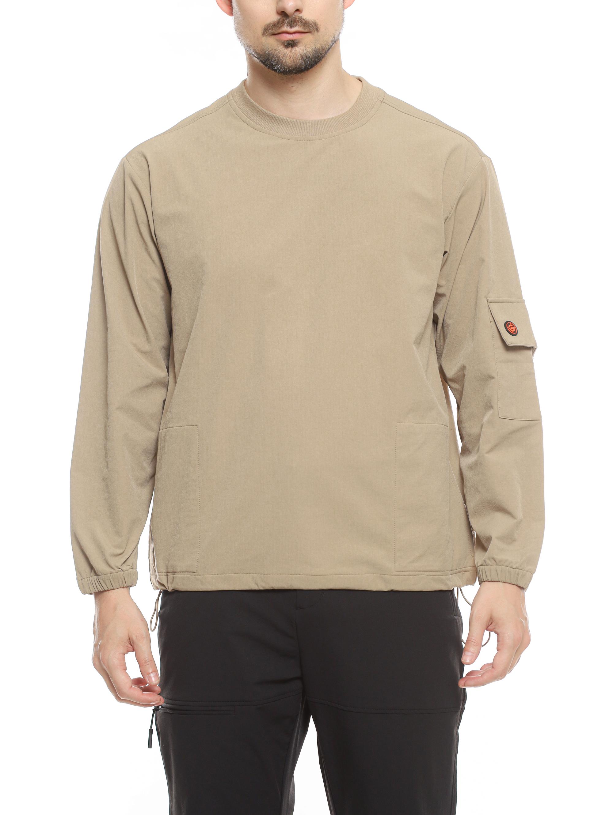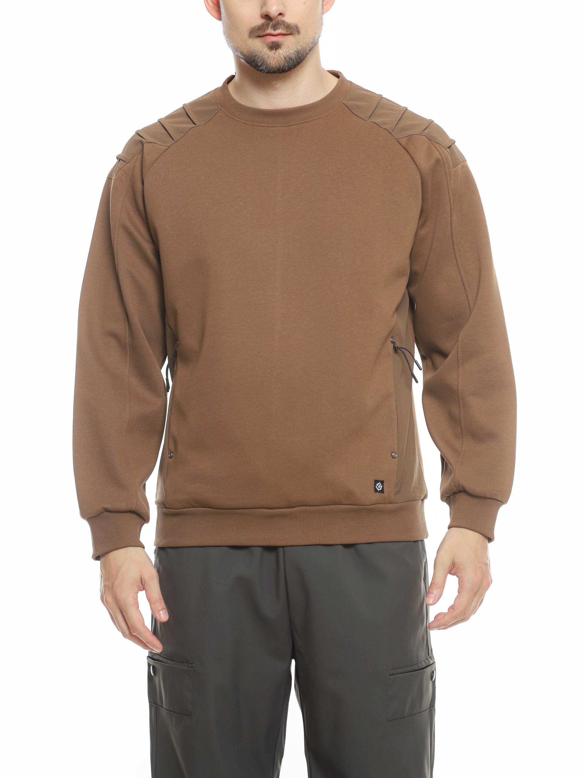 SWEATSHIRT 2 WAY FABRIC DETAILS PLEATS ON SHOULDER POCKET WITH ZIPPER AND PULLER LONG SLEEVE