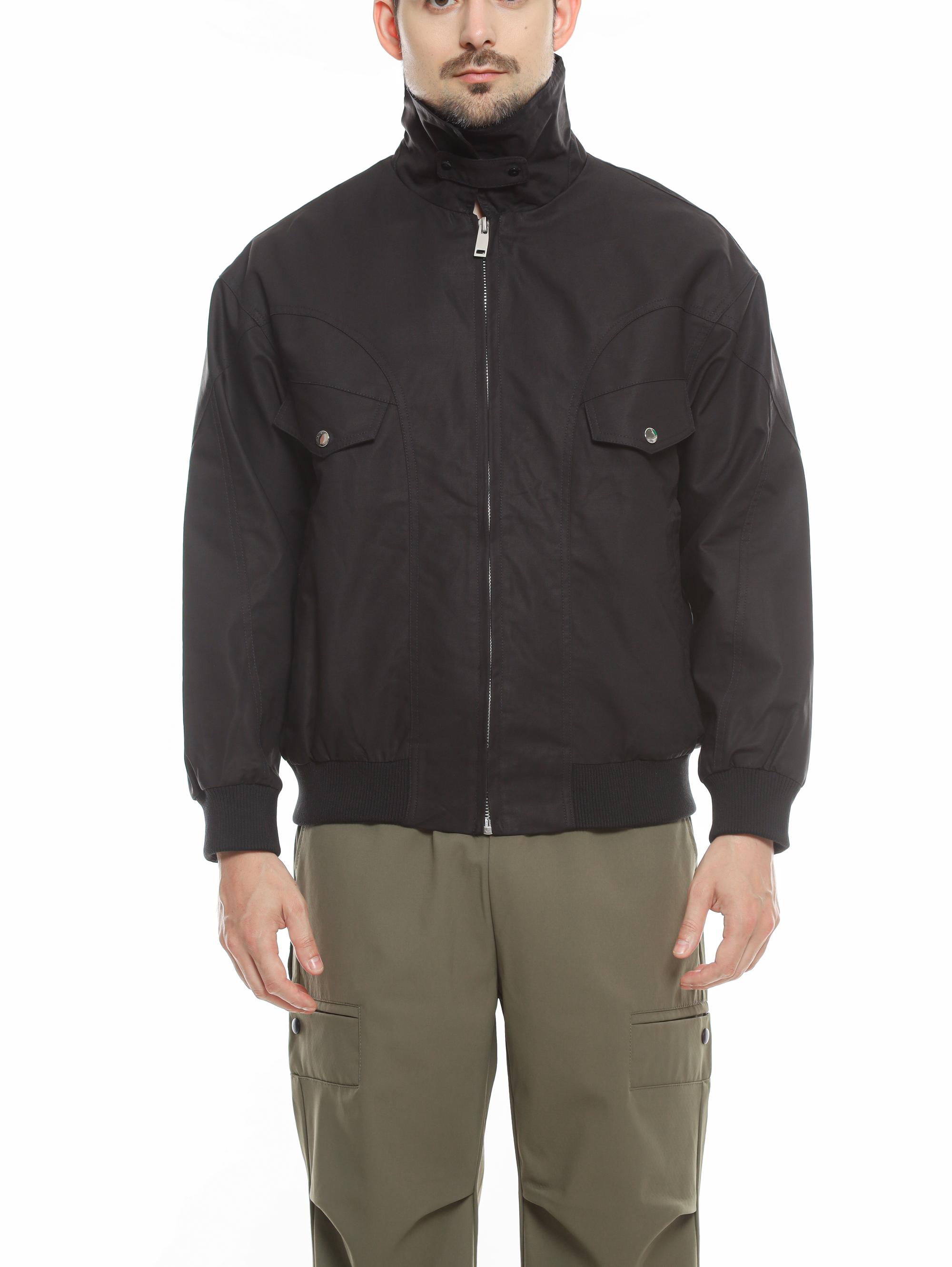 JACKET WITH STAND COLLAR CUT & SEWN AND FLAP DETAILS ZIPPER UP. LONG SLEEVE